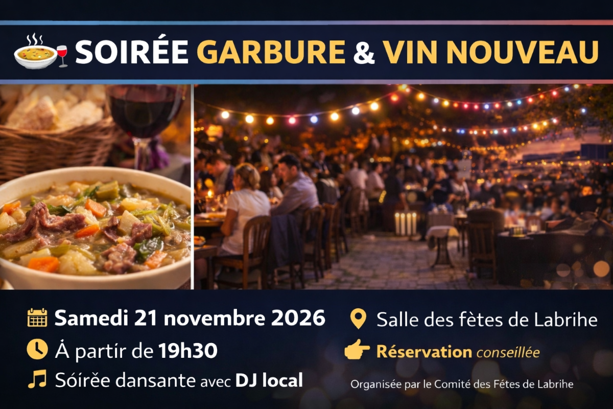 Le comité des fêtes de Labrihe Bouvées vous invite pour une soirée exceptionnelle placée sous le signe de la musique, de la convivialité, de la bonne humeur et des souvenirs!